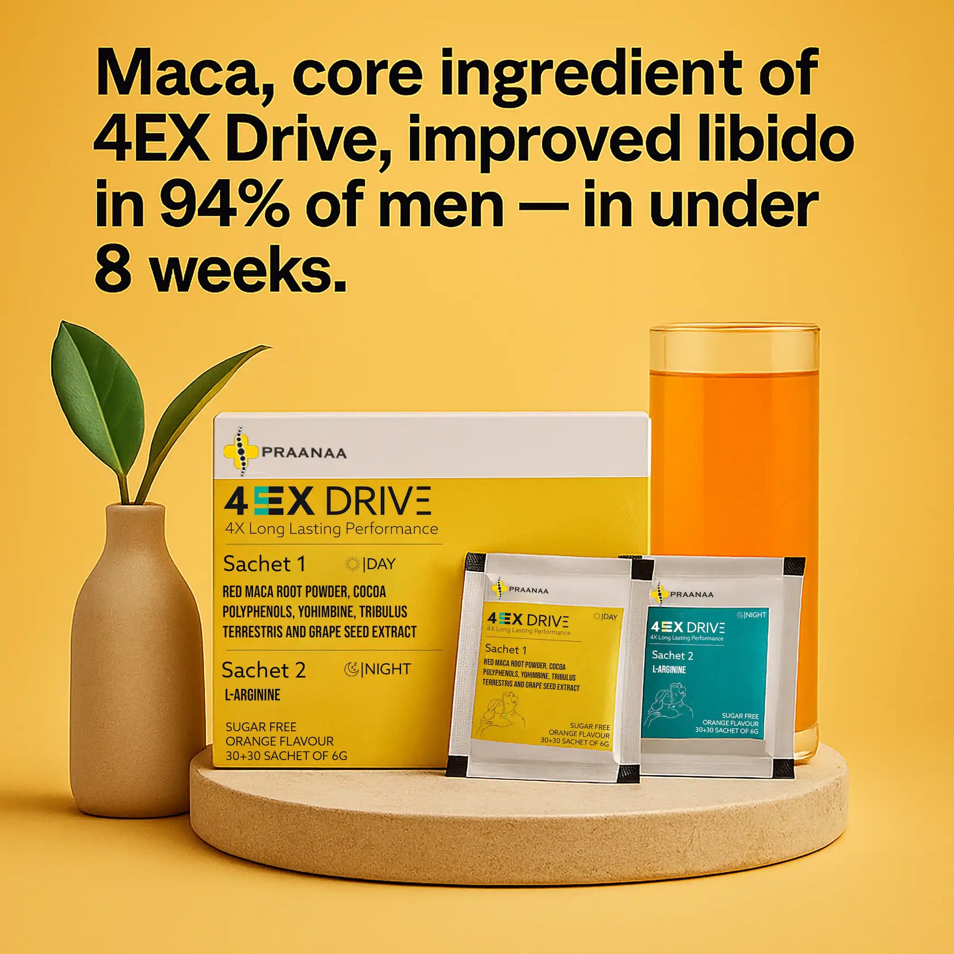 Subtle shifts in energy and mood can appear within 710 days, with stronger improvements in desire and performance after 3 weeks of consistent use. The dual-sachet system offers both long-term support and real-time enhancement.