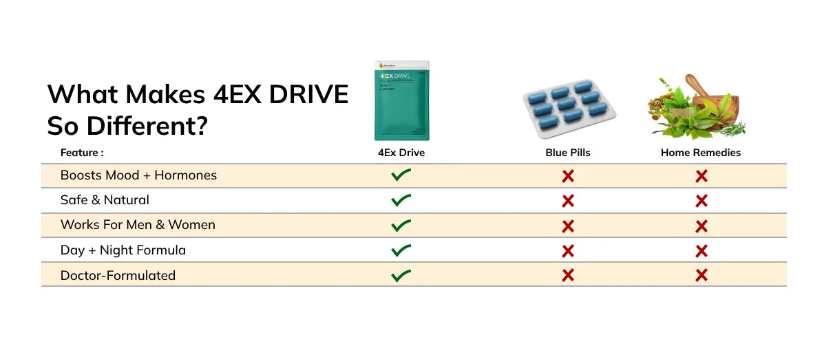 4EX Drive naturallyenhances blood flow, improves stamina, and boosts libidousing powerful, science-backed ingredients. Itsupports nitric oxide production, which helps with harder and longer-lasting erections while increasing arousal and sexual satisfaction.