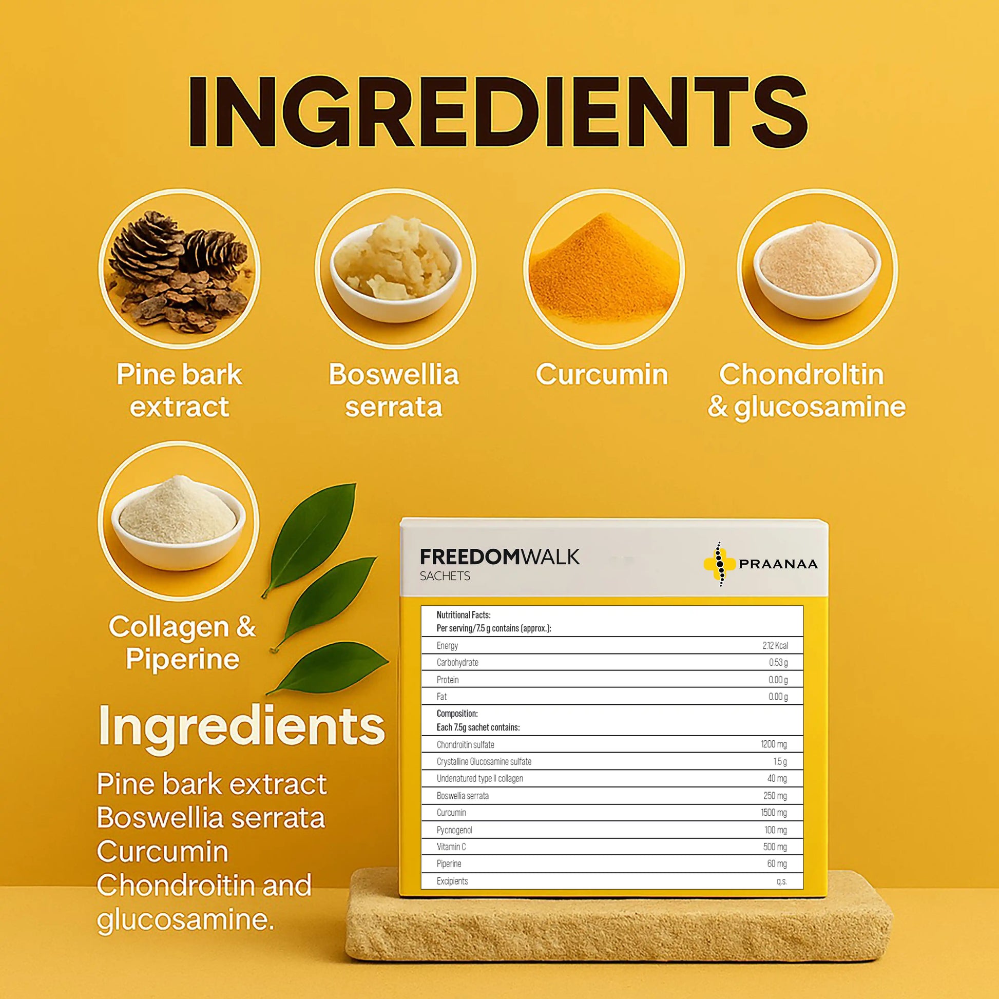 Freedom Walk is a potent food supplement designed to provide effective knee pain relief. It is based on extensive research and scientific evidence, ensuring a high-quality solution that priorities your comfort and mobility.